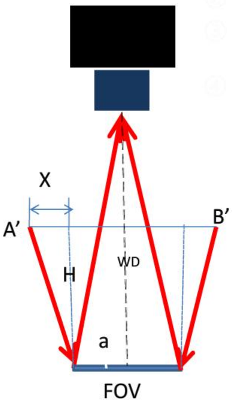 ② 當(dāng)H=WD/2時(shí),要得到均勻光照,需要光源外徑A'B'為1.5FOV
