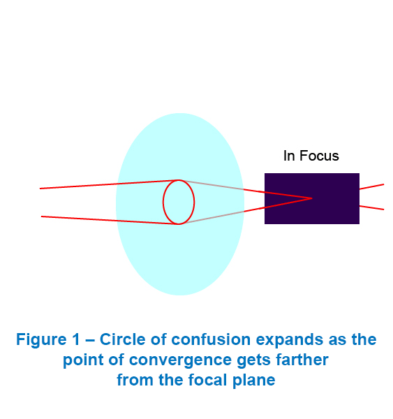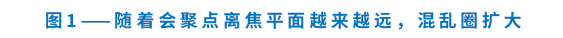 為了解釋像差如何使圖像模糊,首先需要解釋一下:什么是彌散圓?來自目標(biāo)的光點(diǎn)到達(dá)鏡頭然后會(huì)聚在傳感器上時(shí),圖像會(huì)很清晰。但是如果光點(diǎn)會(huì)聚于傳感器前后,則傳感器上的光線會(huì)廣泛分布、擴(kuò)散。圖1中可以看到這種情況,其中可以看到點(diǎn)光源會(huì)聚在傳感器上,但隨著傳感器位置的變化,沿傳感器散布的光量也會(huì)發(fā)生變化。