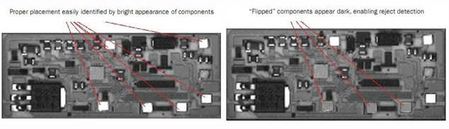 比如檢測(cè)倒裝芯片(Flipped Chips),在PCB裝配中驗(yàn)證合適的零件方向是常見的機(jī)器視覺應(yīng)用。