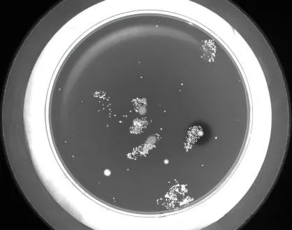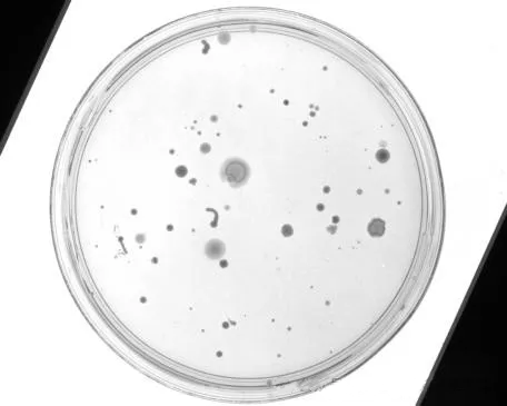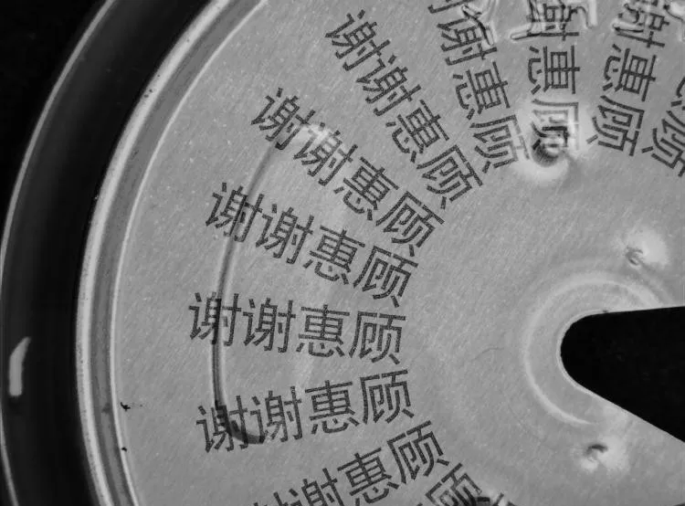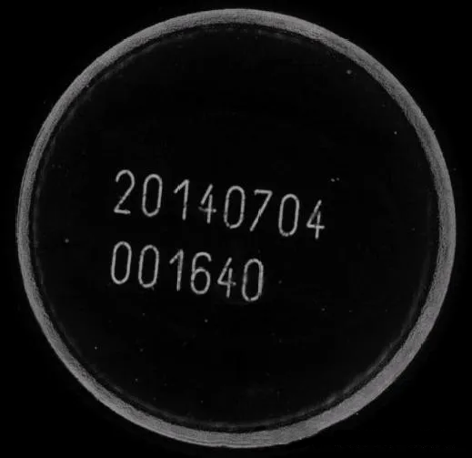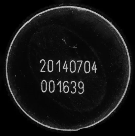 瓶蓋上面是黑色,另有紅黑交錯(cuò)背景圖案,條碼為激光刻印顯灰色,為了顯現(xiàn)出條碼,應(yīng)該將字符打亮,背景與字符分辨明顯;我們?nèi)绻x用紅色光源的話,背景中的紅色會(huì)濾掉打白,會(huì)干擾同為白色的字符,所以,我們應(yīng)該利用光源的互補(bǔ)原理,采用藍(lán)色光源,將紅色背景盡量打黑;