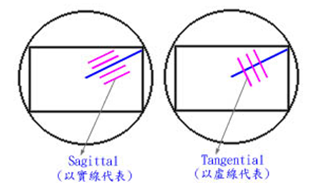 MTF在對鏡頭做測試時,是對鏡頭輸入一組固定頻率的光線,再利用光學儀器去計算切線及法線方向每lmm可以讀到多少對線(Line Part)。
