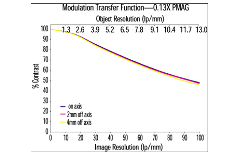 例如lmm中有40道白光,此時會形成40組黑白線條。這組光線在經過鏡頭之后,會因為光學損而開始顯得不是那么地黑白分明。經由儀器的測量就可知道此鏡頭各個區(qū)域對這一組黑白線條的分辨能力。