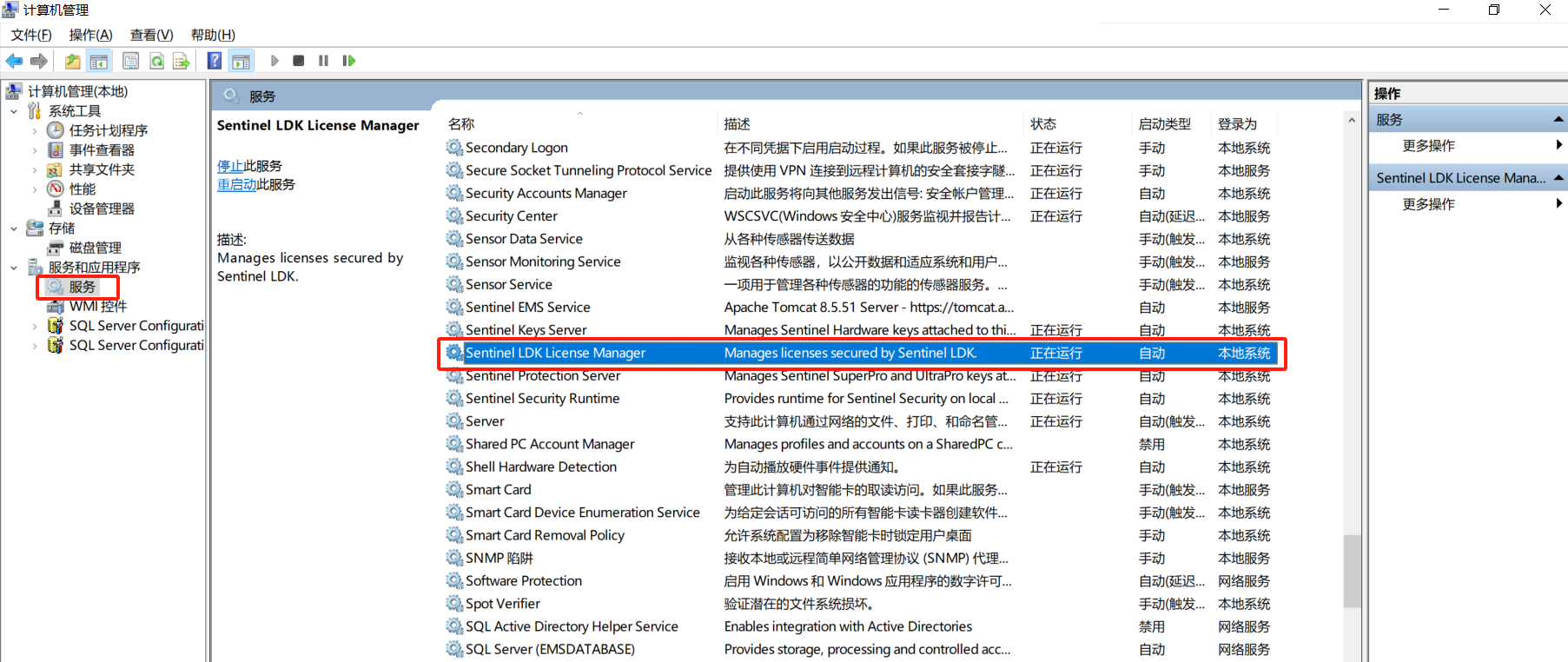 4、檢查”服務”中Sentinel LDK License Manage是否出現(xiàn)關閉的情況