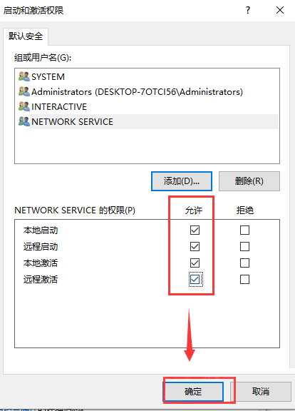 3、啟動(dòng)和激活權(quán)限(你可以編輯默認(rèn)情況下允許啟動(dòng)應(yīng)用程序或激活對(duì)象的用戶。你也可以在應(yīng)用程序上設(shè)置限制以決定其權(quán)限)–編輯默認(rèn)值–添加NETWORKSERVICE–勾選允許所有權(quán)限,最后全部確定退出即可;