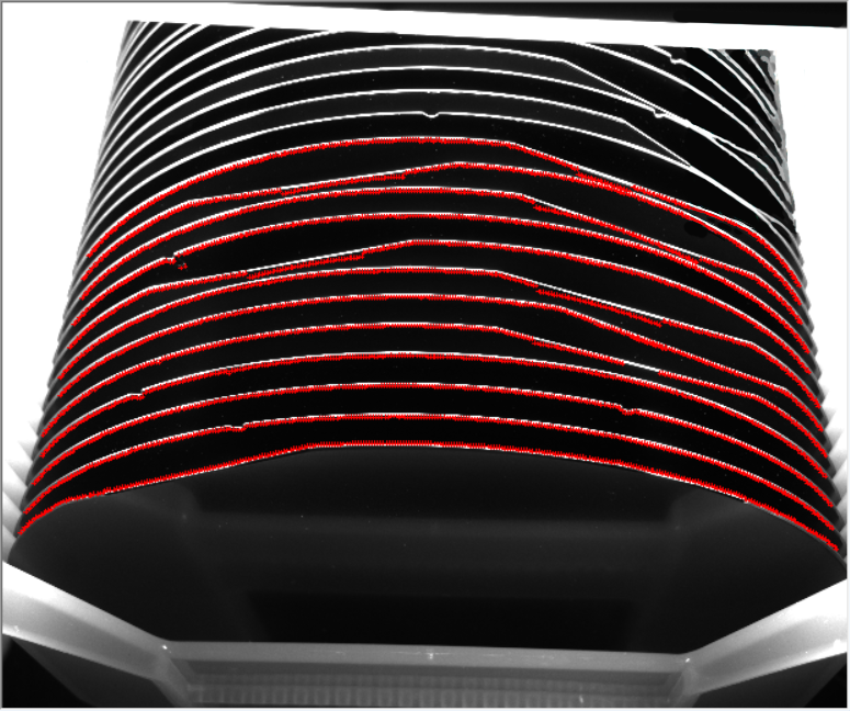 由于需要斜著拍照,倒是相機(jī)拍攝出來的圖片有嚴(yán)重的透視畸變,同時(shí)打光要求難度高, 光源使用組合條形光源,多角度打光