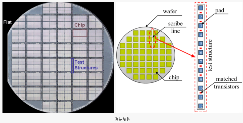 在切割道中創(chuàng)建的測(cè)試結(jié)構(gòu)。