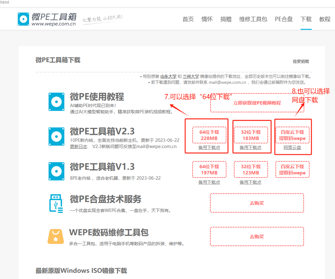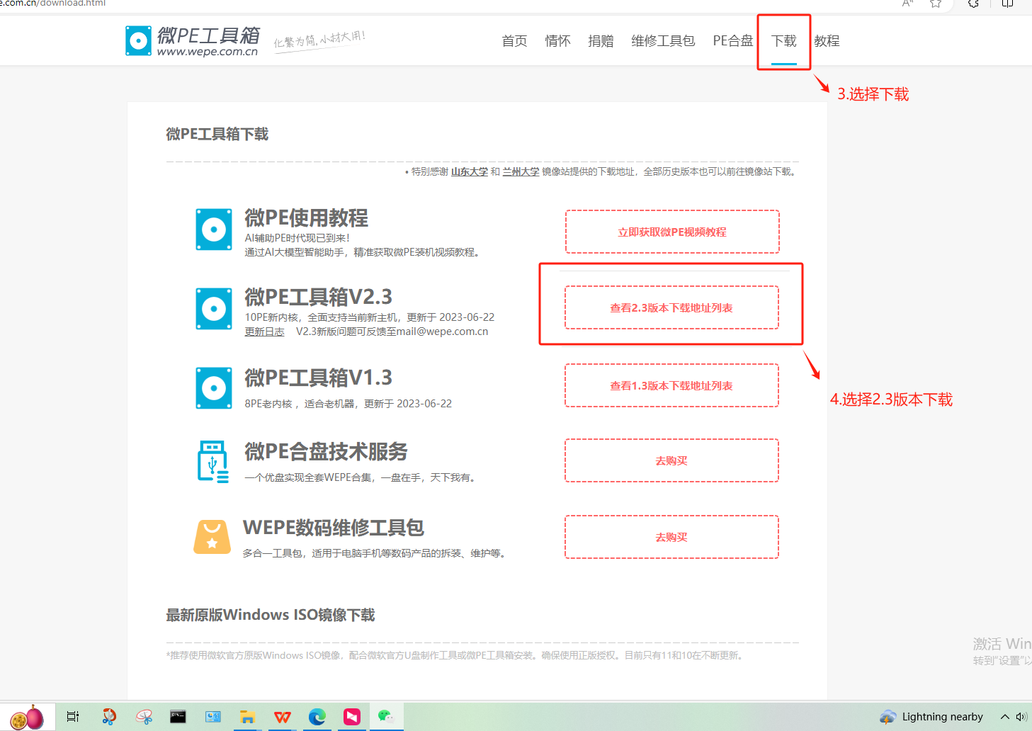2. 在winpe官網(wǎng)上下載“WePE_64_V2.3.exe”程序文件