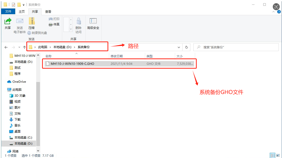 2.選擇“此電腦”>>”D盤”>>”系統(tǒng)備份”,看D盤中有沒有系統(tǒng)備份