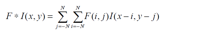 類似地,我們可以將這個(gè)概念擴(kuò)展到二維,如下。基本思想是一樣的,除了圖像和濾波器現(xiàn)在是二維的,可以假設(shè)濾波器有奇數(shù)個(gè)元素,所以它用(2N+1)x(2N+1)矩陣表示。