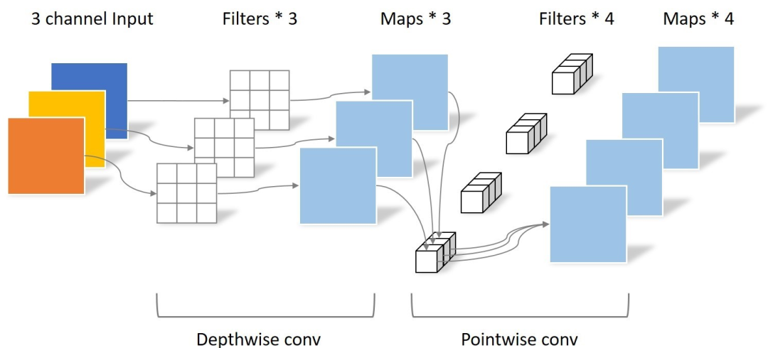 Depthwise SeparableConvolution的參數(shù)個(gè)數(shù)大約是常規(guī)卷積的1/3。因此,在參數(shù)量相同的前提下,采用Depthwise SeparableConvolution的神經(jīng)網(wǎng)絡(luò)層數(shù)可以做得更深。