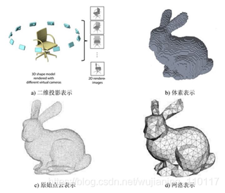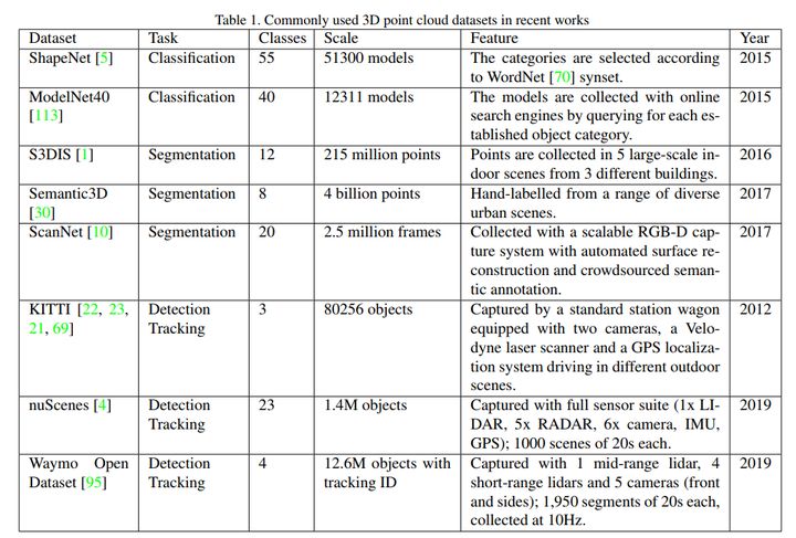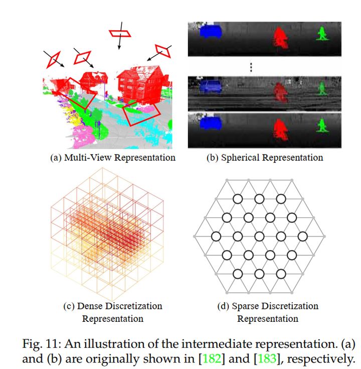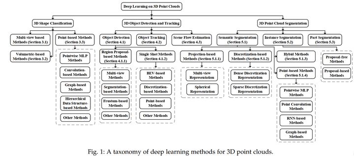 · (如圖所示),不同的表示對應(yīng)著不同的處理方法。比較容易的處理方式為將其投影為二維圖像或者轉(zhuǎn)換為三維體素 (Voxel),從而將無序的空間點轉(zhuǎn)變?yōu)橐?guī)則的數(shù)據(jù)排列;也可以使用原始點作為表示,不做任何變換,該方式的好處為最大可能保留所有原始信息。此外,點云作為空間無序點集,可以被看作普適意義上的圖數(shù)據(jù)。點云還有另外一種表示,稱作網(wǎng)格 (Mesh),其也可以被看作是構(gòu)建了局部連接關(guān)系的點,即為圖。將點云看作圖數(shù)據(jù),可以使用圖領(lǐng)域新興的圖卷積 (Graph Convolution) 技術(shù)進行處理。需要提及的是,原始點的表示和圖表示之間并無明確界限(事實上原始點云和網(wǎng)格 (Mesh) 之間有一定區(qū)別,但若從語義理解方法的角度看,可暫時忽略此區(qū)別,將Mesh看作是增加了一種連接關(guān)系)