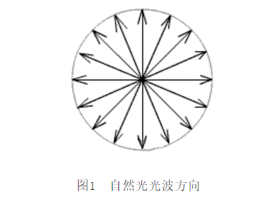 偏振是指橫波的振動矢量(垂直于波的傳播方向)偏于某些方向的現(xiàn)象,光的偏振現(xiàn)象是由法國工程師馬呂斯于1808年發(fā)現(xiàn)的。眾所周知,自然光是一種電磁波,屬于橫波,其在垂直于傳播方向的平面內(nèi)包含著一切可能方向的振動,且平均而言在任一方向上都具有相同的振幅,即振動方向是對稱的,如圖1所示。然而,當(dāng)光的振動方向?qū)τ趥鞑シ较虿粚ΨQ性時(shí),便成了偏振光。偏振現(xiàn)象橫波區(qū)別于其他縱波的一個(gè)最明顯的標(biāo)志。