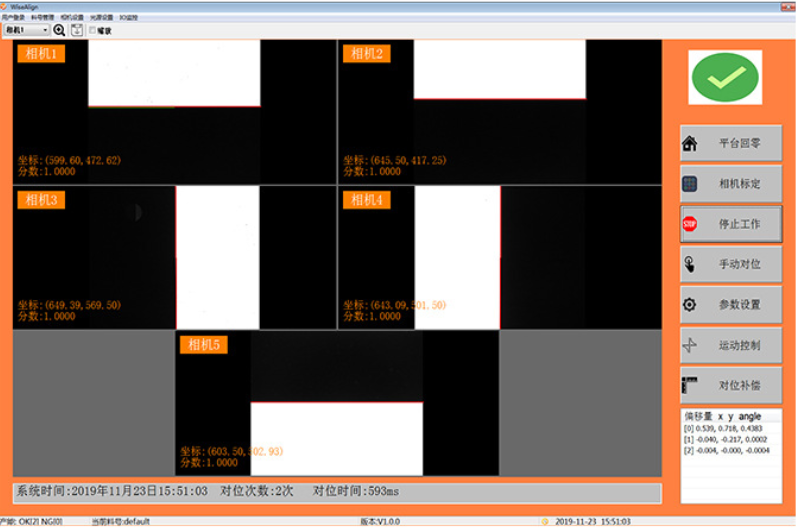 在玻璃蓋板的絲印應(yīng)用中,較多應(yīng)用的是5CCD與6CCD,WiseAlign-5C相機(jī)自對(duì)位系統(tǒng)與WiseAlign-6C相機(jī)自對(duì)位方案在工業(yè)自動(dòng)化領(lǐng)域內(nèi)應(yīng)用極為廣泛,機(jī)構(gòu)工藝簡(jiǎn)單易實(shí)現(xiàn),軟件操作簡(jiǎn)單容易上手。對(duì)于玻璃蓋板這一對(duì)精度要求極高的應(yīng)用場(chǎng)景,WiseAlign系列軟件能夠確保對(duì)位精度達(dá)到驚人的±0.02mm級(jí)別,這一精度標(biāo)準(zhǔn)遠(yuǎn)超行業(yè)平均水平,有效滿足了高端電子產(chǎn)品對(duì)品質(zhì)與精度的極致追求。