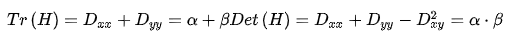 在邊緣梯度的方向上主曲率值比較大,而沿著邊緣方向則主曲率值較小。候選特征點(diǎn)的DoG函數(shù)D(x)的主曲率與