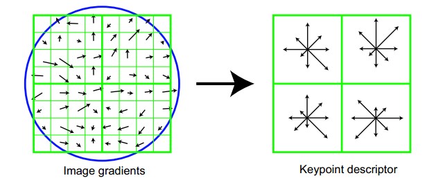 4. 特征點(diǎn)描述 在每個(gè)特征點(diǎn)周圍的鄰域內(nèi),在選定的尺度上測量圖像的局部梯度,這些梯度被變換成一種表示,這種表示允許比較大的局部形狀的變形和光照變換。