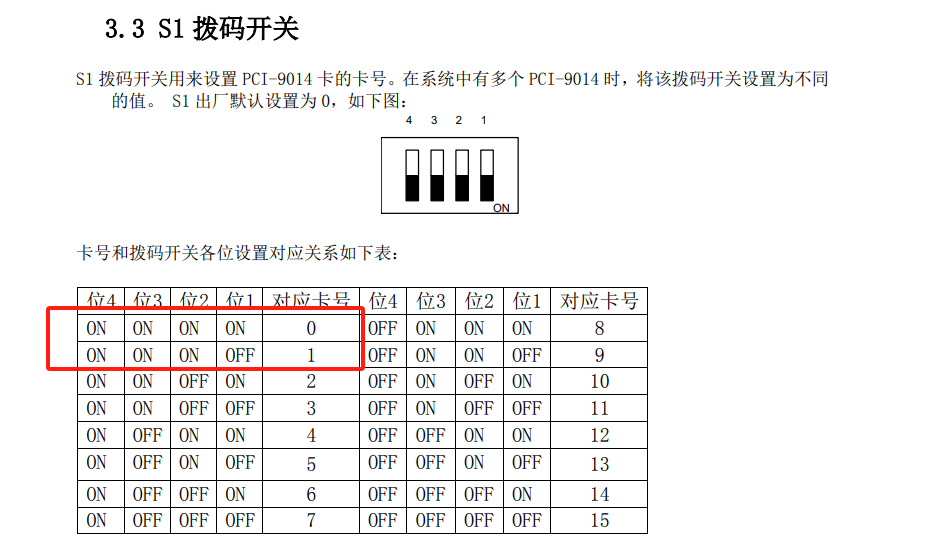8、如果安裝多張9014板卡的時(shí)候要設(shè)置撥碼,按照順序撥卡號如0、1、2這樣