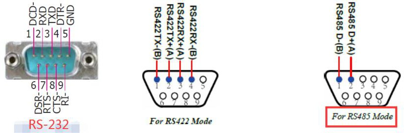 RS232/RS-422/485 定義如下圖所示,按照定義接線: