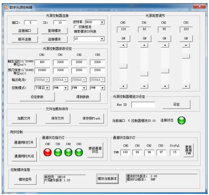 3、使用光源控制器 DEMO 軟件測(cè)試連接是否正常