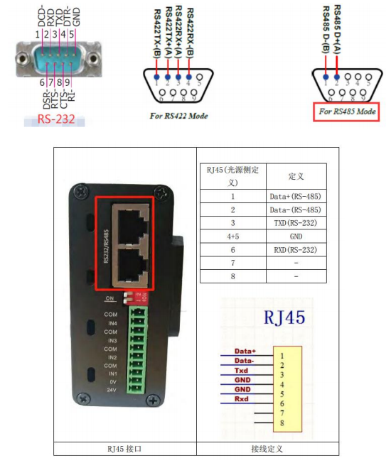 RS232/RS-422/485 定義如下圖所示,按照定義接線:
