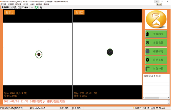 WiseAlign-2C雙相機(jī)自對(duì)位系統(tǒng)是工業(yè)自動(dòng)化中運(yùn)用最多的系統(tǒng)之一,軟件的界面分布簡潔明了,便于用戶快速上手。在此案例中,利用WiseAlign軟件進(jìn)行高精度、高速度的對(duì)位作業(yè)。