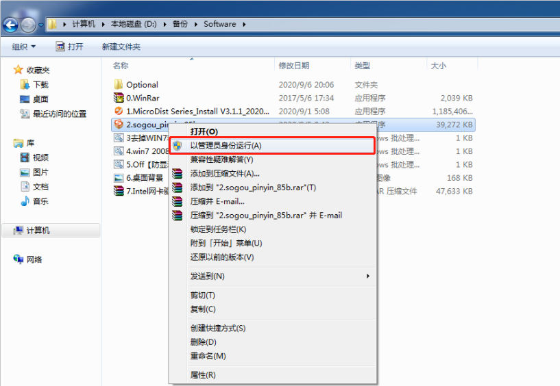 右鍵單擊“2.sogou_pinyin_85b.exe”程序安裝包。