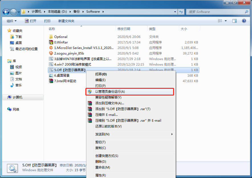 右鍵單擊文件“5.Off【防顯示器黑屏】.bat”。