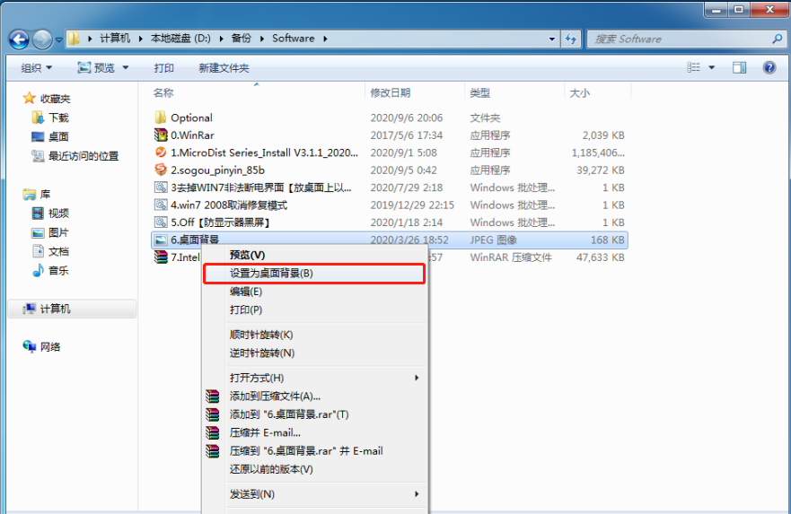 右鍵單擊文件“6.桌面背景.jpg”。點擊“設(shè)置為桌面背景”。