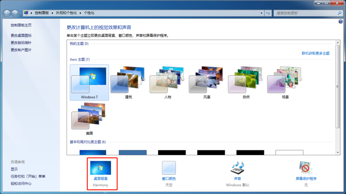 在個性窗口中,點擊“桌面背景”