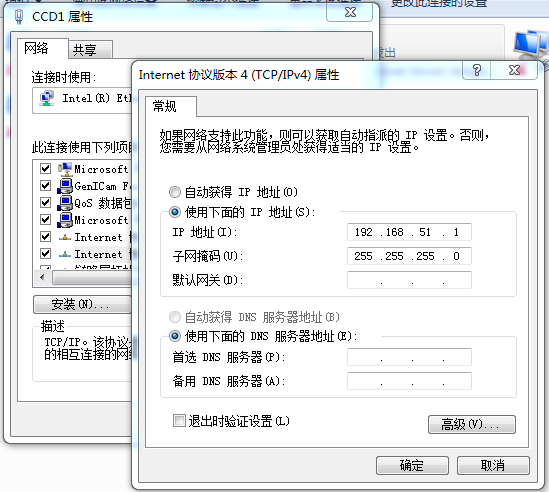 →右鍵點開“CCD0”的網(wǎng)絡(luò)屬性,修改相機(jī)的IP地址如下
