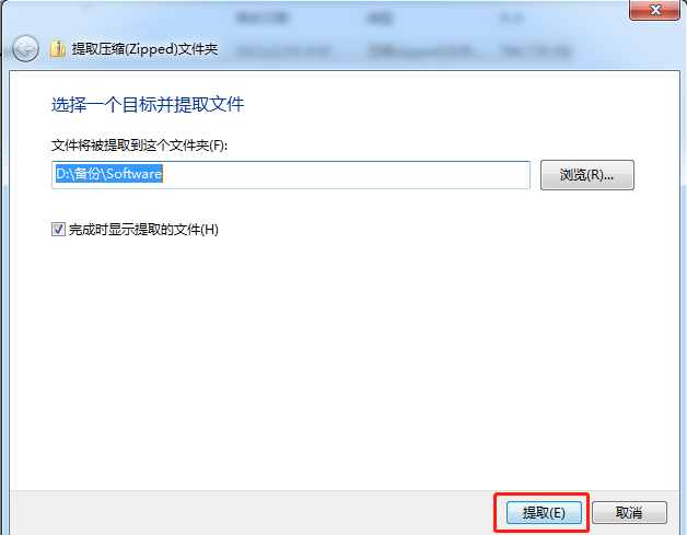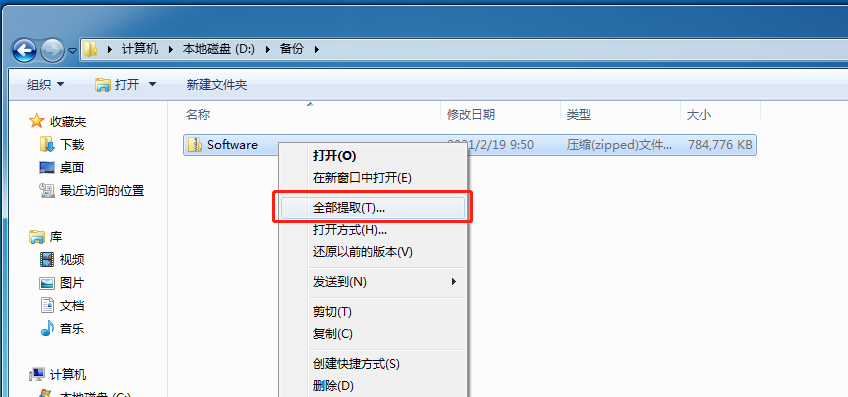 右鍵單擊Software.zip,選擇“全部提?。═)...”,彈出的對話框點擊“提取”。