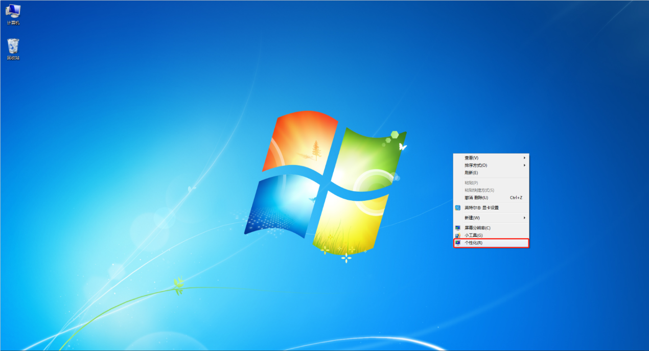 回到桌面,在桌面空白區(qū)域右擊。點擊“個性化”。