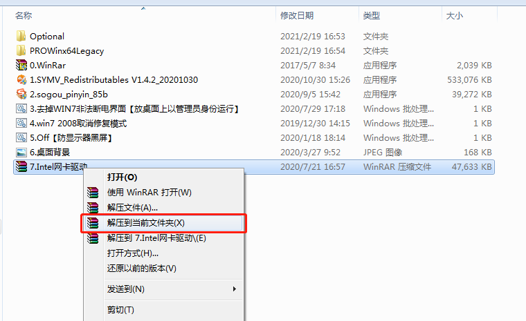 右鍵單擊文件“8.Intel網(wǎng)卡驅(qū)動.rar”。