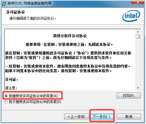 →勾選“我接受該許可證協(xié)議中的條款(A)”
