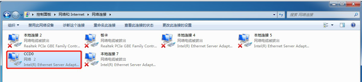 →將有“左邊相機”(以上電)的網(wǎng)線插入網(wǎng)口,將對應(yīng)的網(wǎng)絡(luò)名稱“本地連接”修改為“CCD0”
