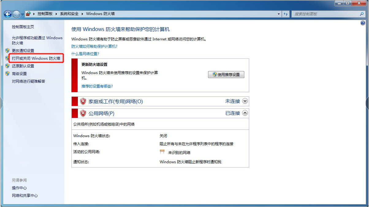 →點擊“打開或關(guān)閉 Windows 防火墻”
