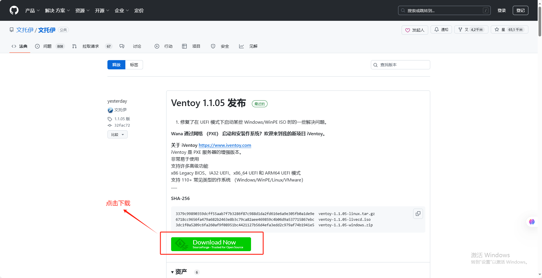 點(diǎn)擊“Download.Ventoy”進(jìn)入Ventoy下載頁面,并選擇Windows版下載