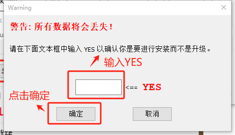 輸入“YES”,點(diǎn)擊“確定”