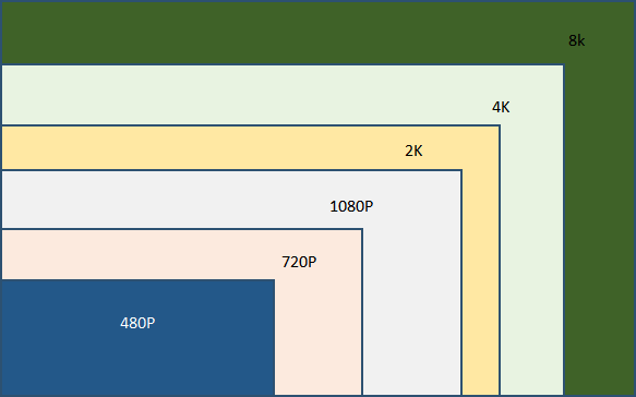 再看看“K”,2K、4K等標識里的“K”,表示的是“視頻像素的總列數”。以4K為例,它意味著視頻有大約4000列像素數,具體可能是3840列,也可能是4096列。4K分辨率的攝像機,像素數通常是3840×2160或者4096×2160。