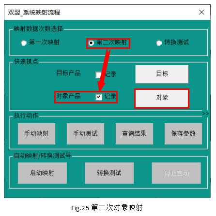3) 勾選第二次映射,重復(fù)1)、2)步驟,再搬運(yùn)一次映射產(chǎn)品,記錄第二次目標(biāo)坐標(biāo)。
