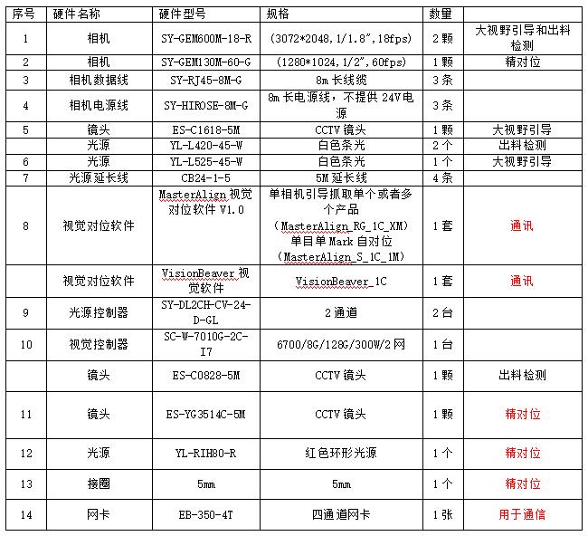 配置清單如下: