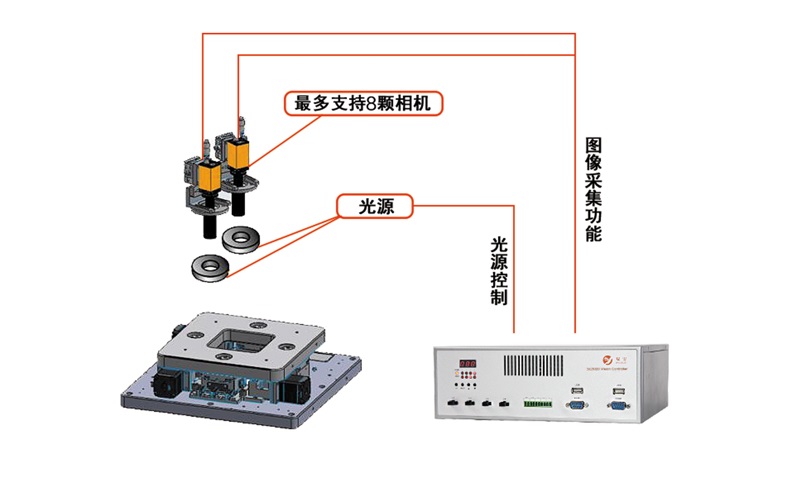 在實際的液晶電視生產(chǎn)線中,MasterAlign視覺系統(tǒng)采用多相機(jī)協(xié)同工作的架構(gòu)。一個相機(jī)負(fù)責(zé)精準(zhǔn)定位上層組件的位置,另一個相機(jī)則同步定位下層組件。