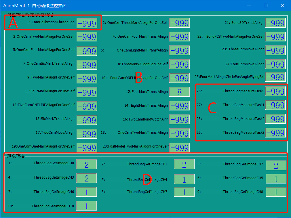 B. 自動(dòng)運(yùn)行線程:各類對(duì)位應(yīng)用的運(yùn)行線程,序號(hào)依次為 2-25 狀態(tài)顯示框;