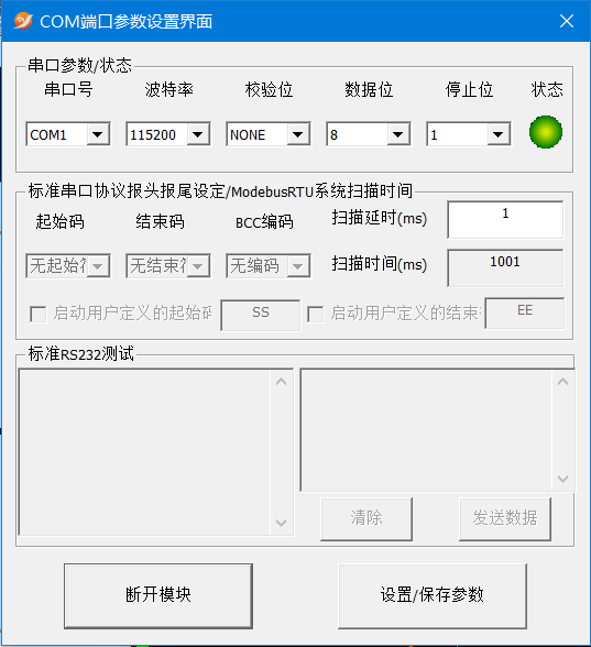 G. 標(biāo)準(zhǔn)串口協(xié)議通訊端口設(shè)置界面: