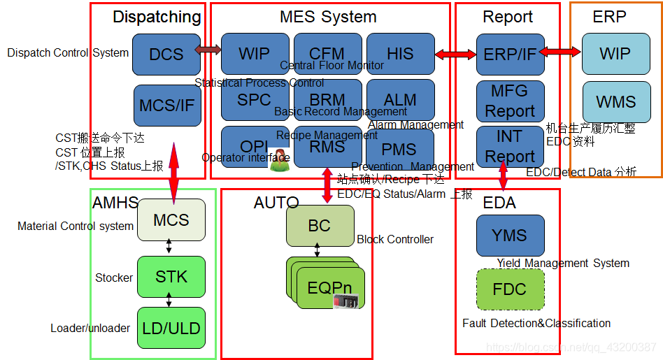 ●MCS: Material Control System, AMHS系統(tǒng)中的核心軟件, MES會(huì)下達(dá)搬送命令給他, 而MCS主要工作便是運(yùn)用預(yù)先定義好的Routing Path, 選擇最佳的搬送路徑將MES的Marco命令解析為好幾個(gè)Micro命令在分別下達(dá)給如STKC, AGVC, RGVC, HOSC…等各搬送實(shí)體的控制器.