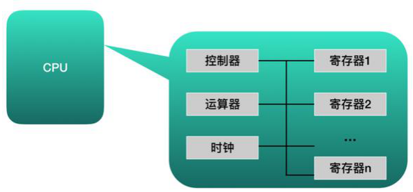 從功能來(lái)看,CPU 的內(nèi)部由寄存器、控制器、運(yùn)算器和時(shí)鐘四部分組成,各部分之間通過(guò)電信號(hào)連通。
