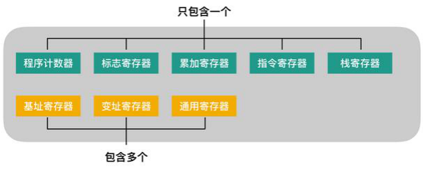 其中程序計(jì)數(shù)器、累加寄存器、標(biāo)志寄存器、指令寄存器和棧寄存器都只有一個(gè),其他寄存器一般有多個(gè)。