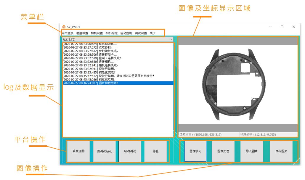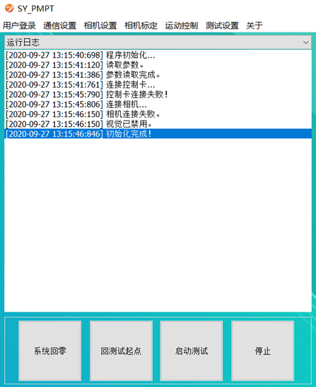 1.啟動SY_PMPT程序,啟動時自動連接相機和板卡,如果沒有檢測到相機,系統(tǒng)自動禁用視覺。