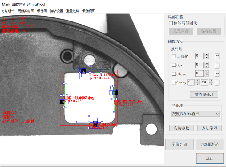 (3)點擊“主處理”中的“灰度匹配+4直線”,調整工具位置。