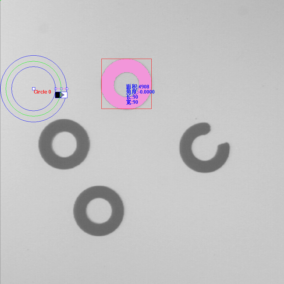 該方法首先進行斑點分析,找到符合條件的圓形斑點,再使用圓工具對圓形斑點進行幾何特征分析。