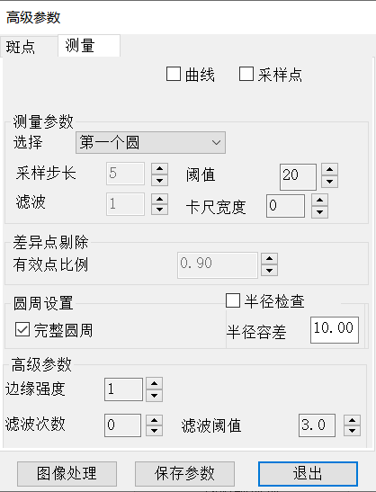 這兩個參數(shù)是組合使用的,它們起到剔除差異點的作用,提高擬合圓的準確性。